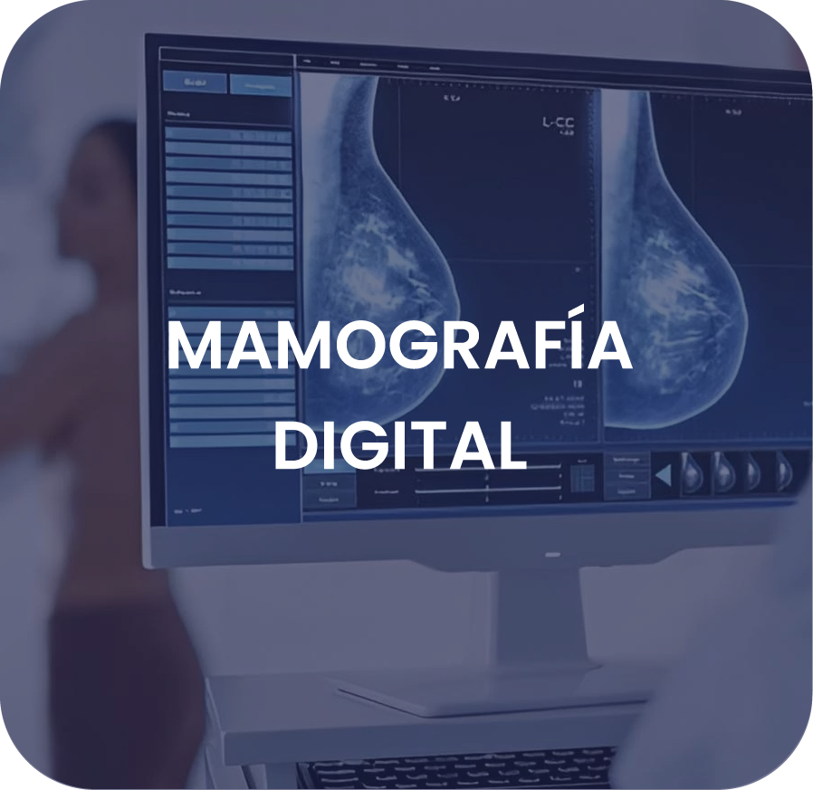 La mamografía digital es un estudio de diagnóstico por imágenes que utiliza rayos X de baja dosis para obtener imágenes detalladas del tejido mamario. Es la herramienta principal para la detección temprana del cáncer de mama, incluso antes de que aparezcan síntomas o signos clínicos. A diferencia de la mamografía convencional, en la modalidad digital las imágenes se capturan electrónicamente y se visualizan en una computadora, lo que permite mejor resolución, mayor precisión diagnóstica y posibilidad de procesamiento digital (acercamientos, ajustes de contraste, comparación con estudios anteriores, etc.).